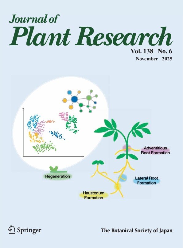 寄生植物コシオガマは宿主シロイヌナズナに侵入し、道管連結を成立させる。本論文では、コシオガマの寄生過程におけるシングル核RNA-seqをおこない、寄生器官内の細胞クラスターを同定した。さらに、バルクRNA-seq解析と統合することにより、道管連結を制御する遺伝子ネットワークを明らかにした。(pp. 921-936)